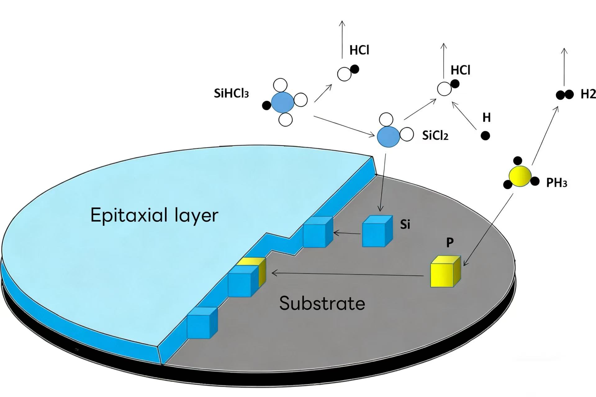 โดยทั่วไปแล้ว Silicon Epitaxy จะใช้เตา Epitaxy แบบเฟสไอ หลักการคือการสลายตัวของแหล่งกำเนิดซิลิคอน (เช่น ไซเลน ไดคลอโรซิเลน ไตรคลอโรซิเลน และซิลิคอนเตตราคลอไรด์ ทำปฏิกิริยากับไฮโดรเจนเพื่อสร้างซิลิคอน ในระหว่างการเจริญเติบโต ก๊าซที่ใช้สารกระตุ้น เช่น PH₃ และ B₂H₆ สามารถนำไปใช้พร้อมกันได้ ความเข้มข้นของสารกระตุ้นจะถูกควบคุมอย่างแม่นยำโดยความดันย่อยของก๊าซ เพื่อสร้างชั้นเอพิแทกเซียลที่มีความต้านทานจำเพาะ