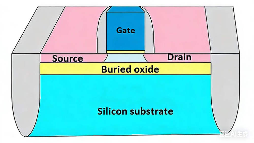 การมีชั้นฉนวน SiO2 แยกทรานซิสเตอร์ออกจากซับสเตรตซิลิกอนที่อยู่ด้านล่างได้อย่างมีประสิทธิภาพ การแยกนี้จะช่วยลดกระแสไฟฟ้าที่ไม่ต้องการจากชั้นที่ใช้งานไปยังวัสดุพิมพ์ กระแสไฟรั่วจะเพิ่มขึ้นตามอุณหภูมิ จึงช่วยเพิ่มความน่าเชื่อถือของชิปได้อย่างมากในสภาพแวดล้อมที่มีอุณหภูมิสูง