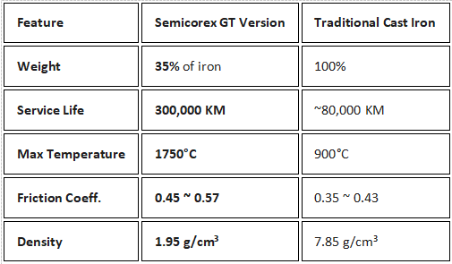 การลดมวล: รุ่น GT มีน้ำหนักเพียง 35% ของแผ่นเหล็กหล่อมาตรฐาน
